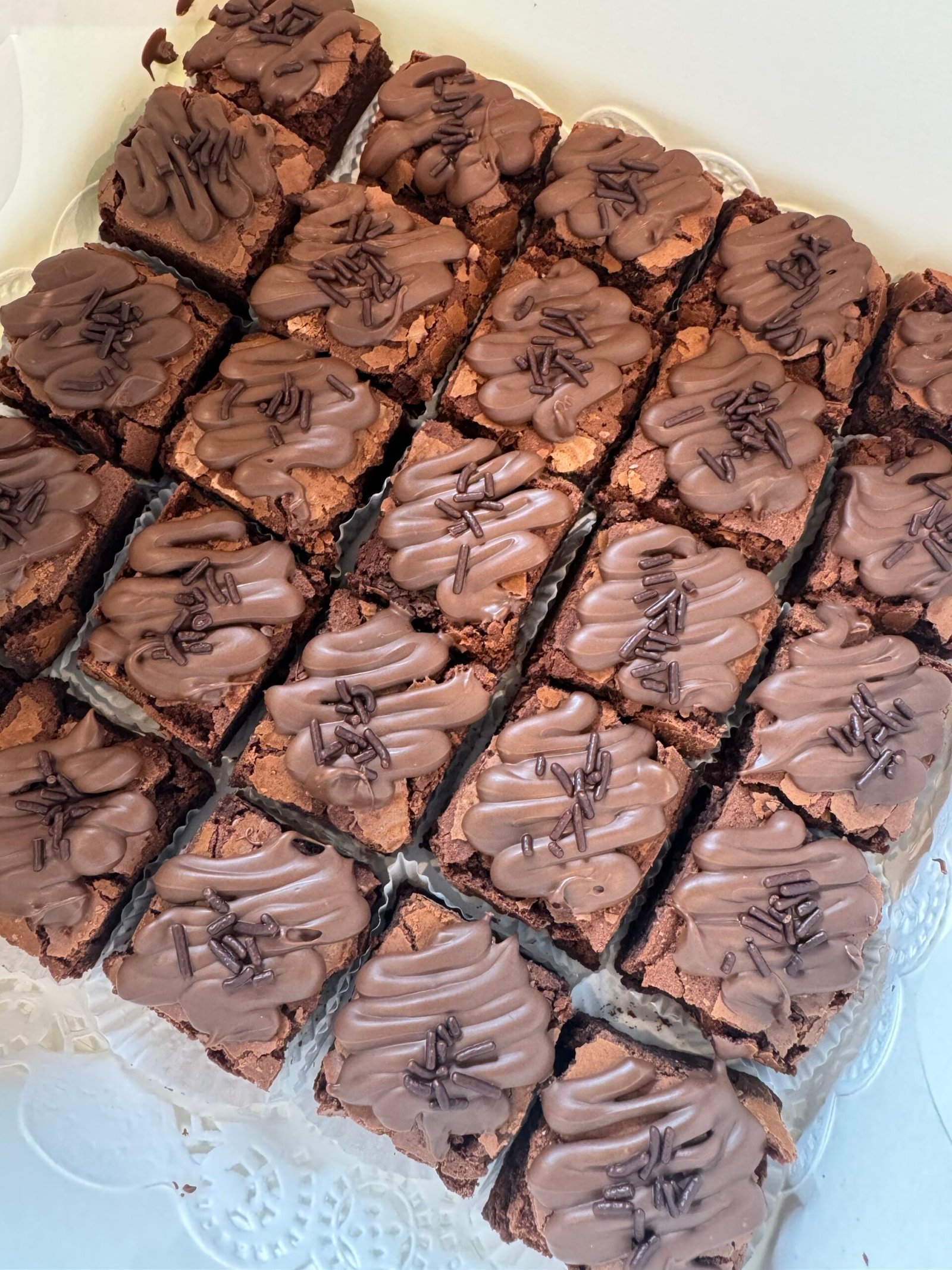 25 unidades del mas flufly y delicioso brownie, cobertura crocante y centro per humedo que se deshace en cada bocado.